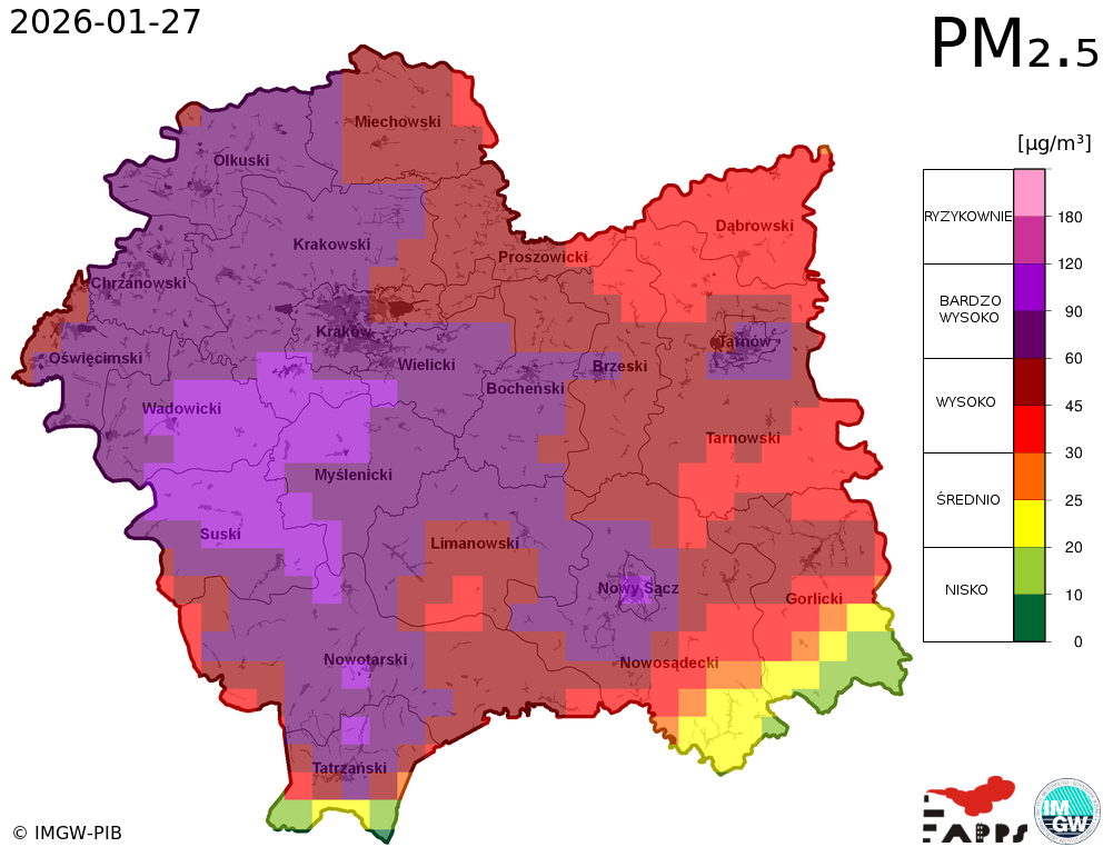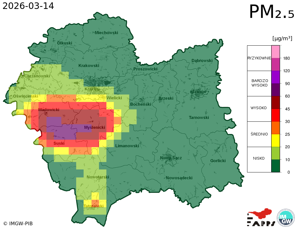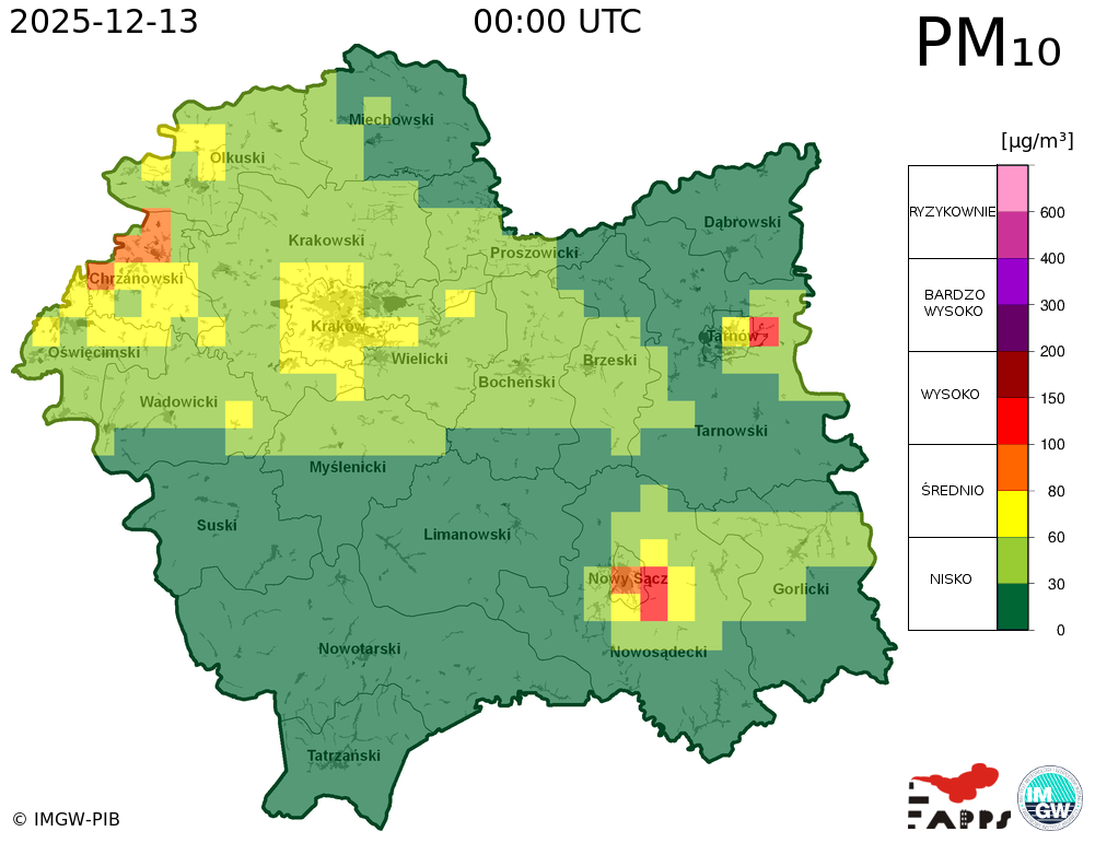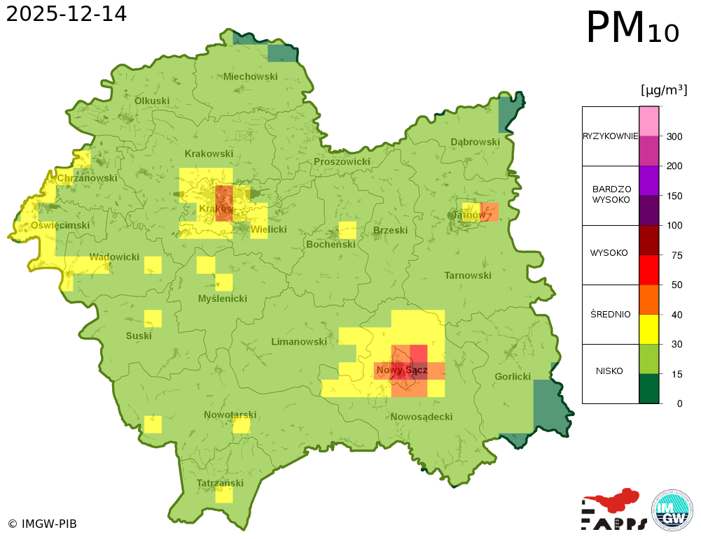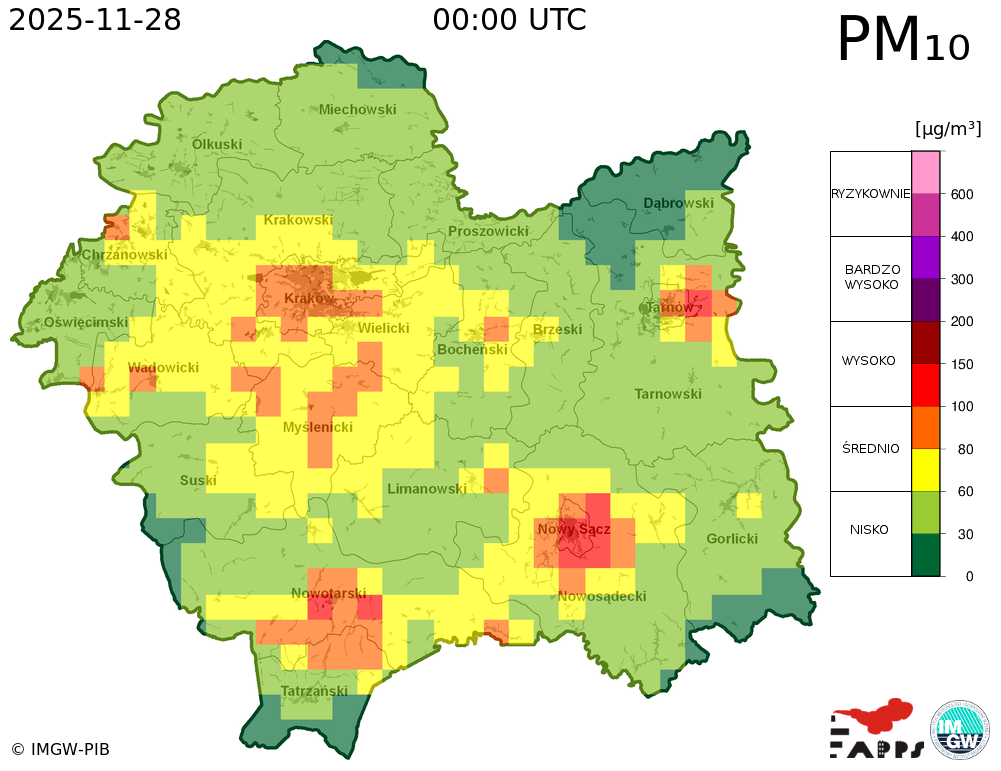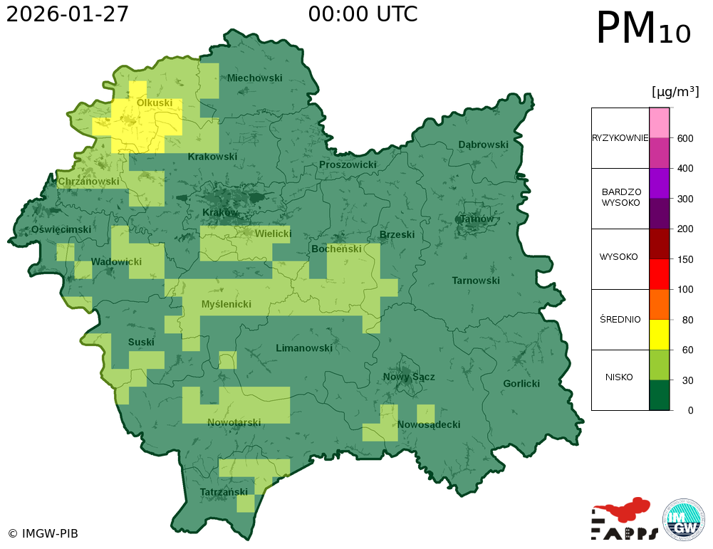 Prezentowane prognozy informują o przewidywanych prawdopodobnych poziomach stężeń zanieczyszczeń powietrza. W związku z tym, istnieje ryzyko, że prognozy się nie sprawdzą, tzn. przewidywane poziomy stężeń zanieczyszczeń powietrza mogą zostać zawyżone lub zaniżone w stosunku do poziomów, które wystąpią w rzeczywistości.
