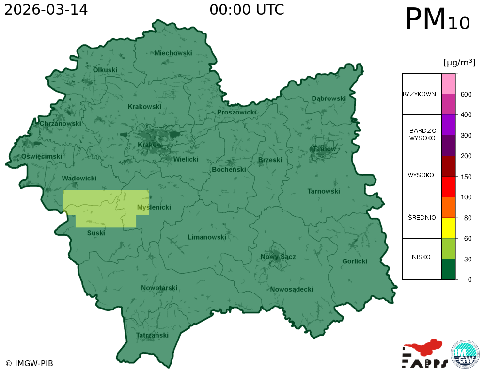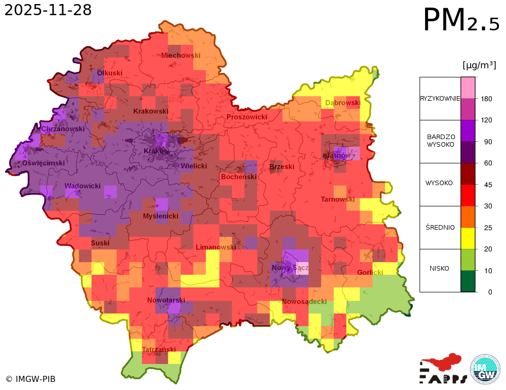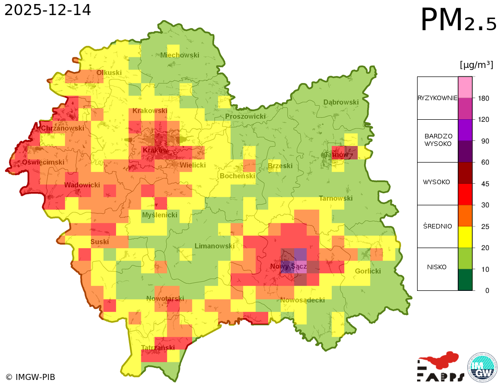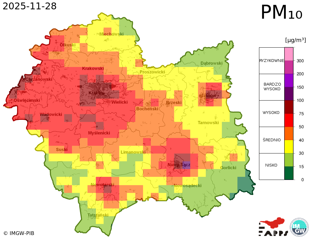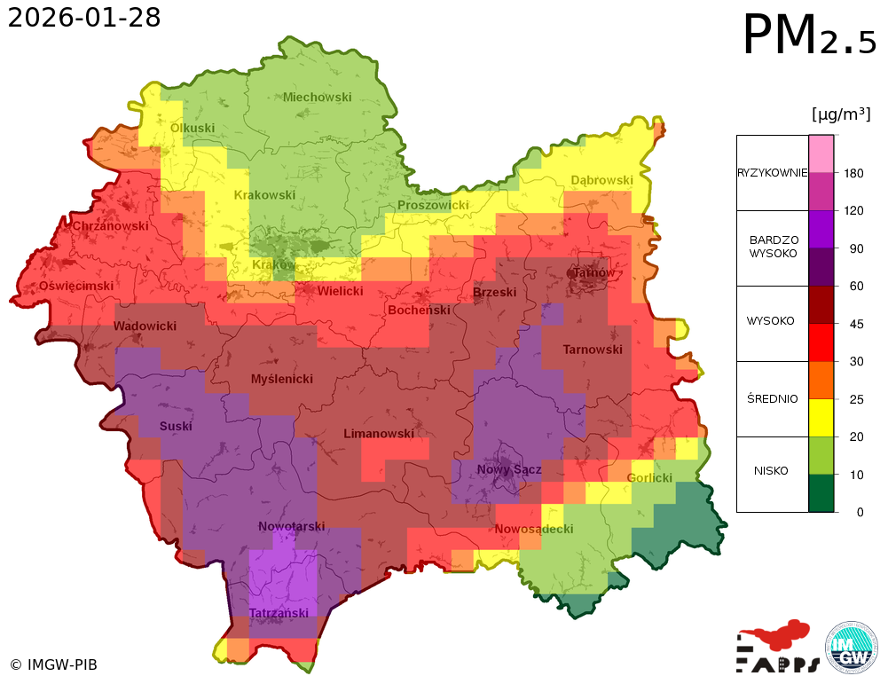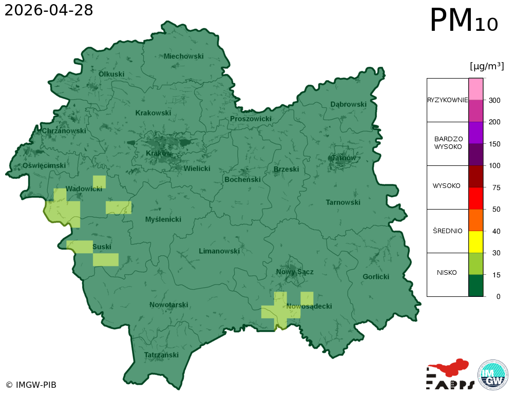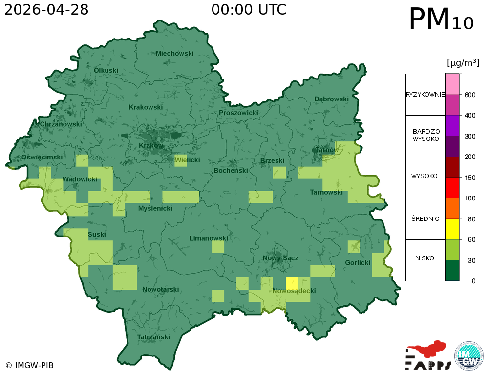 Prezentowane prognozy informują o przewidywanych prawdopodobnych poziomach stężeń zanieczyszczeń powietrza. W związku z tym, istnieje ryzyko, że prognozy się nie sprawdzą, tzn. przewidywane poziomy stężeń zanieczyszczeń powietrza mogą zostać zawyżone lub zaniżone w stosunku do poziomów, które wystąpią w rzeczywistości.