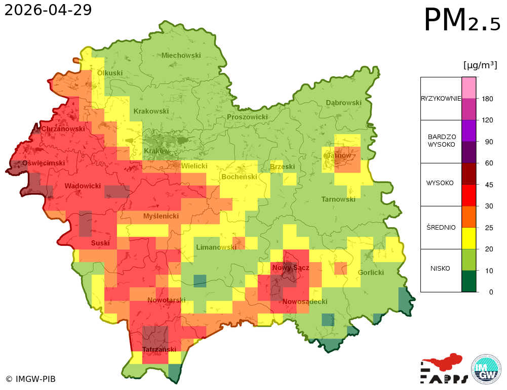 Kobiety w ciąży, dzieci i osoby starsze oraz osoby ze skłonnościami do zachorowań na stany zapalne górnych i dolnych dróg oddechowych, a także osoby z astmą i chorobami układu sercowo-naczyniowego powinny bezwzględnie unikać przebywania na otwartym powietrzu. Zaleca się zaniechanie palenia papierosów. W przypadku pogorszenia stanu zdrowia należy skontaktować się z lekarzem. |